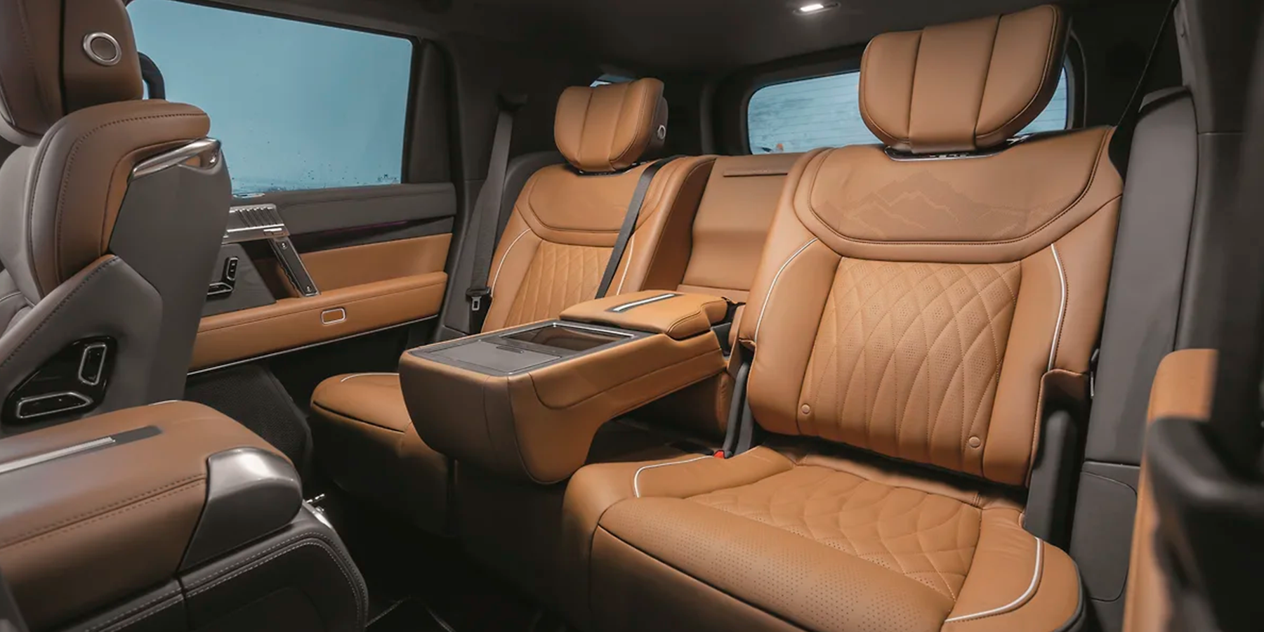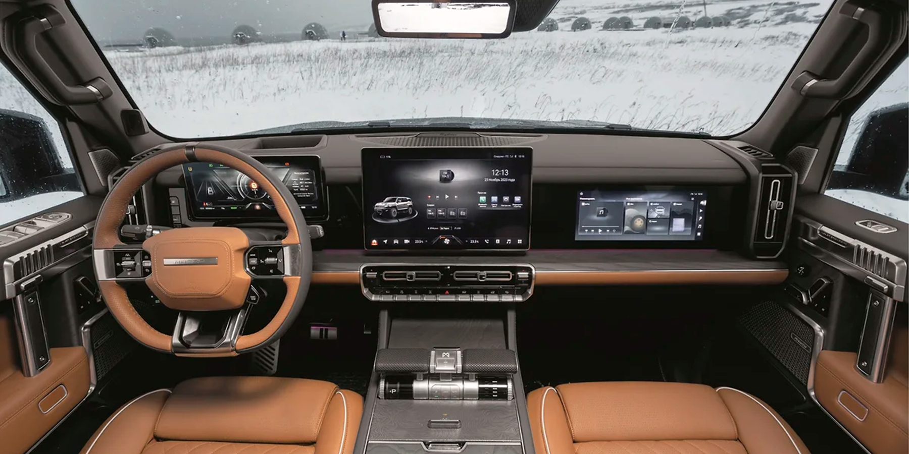 Вариантов внедорожных приключений на M-Hero можно испытать какое-то бесконечное множество. Водитель и пассажиры при этом находятся в максимальной лакшери-атмосфере. Интерьер безупречного качества без натяжки можно назвать роскошным. Оригинальные текстуры отделки шпоном — как уверяют, редких пород деревьев — гармонично сочетаются с кожей Nappa и алюминиевыми вставками. Все сиденья, за исключением центрального на втором ряду, оснащены электрорегулировками, подогревом, вентиляцией, возможностью настройки поясничной поддержки, подголовниками, регулирующимися в четырех положениях, и массажем с выбором из восьми вариантов. Задний правый пассажир может сдвигать и складывать переднее пассажирское сиденье при помощи клавиши Boss Key. Центральное сиденье раскладывается в удобный подлокотник, на котором располагается один из четырех дисплеев. Помимо регулировок сидений с заднего ряда доступно управление «кондёром» (именно так и написано в меню), а также медиа, атмосферным светом, звуком медиасистемы и люком.