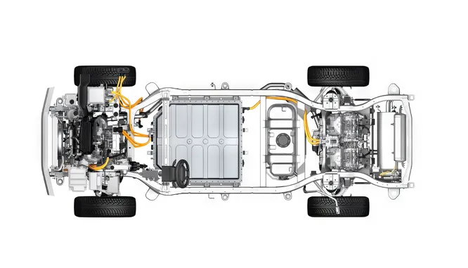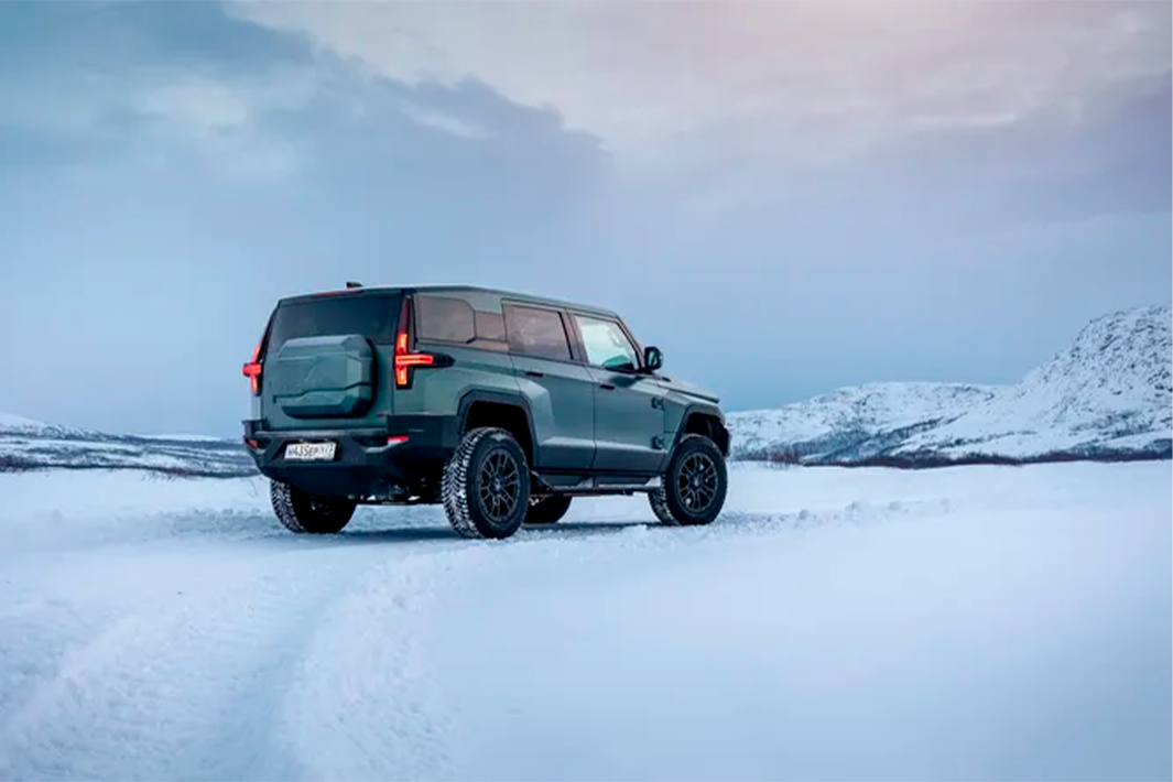 На передней оси стоит один двигатель с пиковой мощностью (272 л. с. и 350 Нм), на задней – два суммарной мощностью 544 л. с. и крутящим моментом 700 Нм. К моторам присоединены трансмиссионные блоки, по одному на каждой оси. В каждом блоке находятся дифференциал с механической блокировкой и двухступенчатый редуктор: одна передача в нем для дороги, вторая – для бездорожья. А собственно коробки передач у автомобиля нет: электродвигатели в ней не нуждаются.