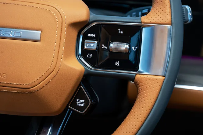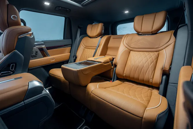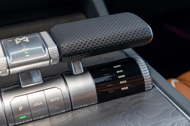 А вот от интерьера впечатления неожиданные. Посадка водителя на редкость удобна. Тумблеры на центральной консоли выполнены в авиационном стиле – один выполняет функции селектора трансмиссии, второй отвечает за настройки противобуксовочной системы, между ними – выбор уровня подвески. Графика щитка приборов – как в компьютерной игре. Дверные ручки стилизованы под пистолеты; на педаль газа нанесена пиктограмма play, на педаль тормоза – pause. Декоративные вставки из матового дерева, кожа сидений добротная, у кресел есть и подогрев, и вентиляция. Так что салон, бесспорно, хорош – с настроением. Жаль только, что для ног пассажиров второго ряда места маловато, но этот недостаток можно признать несущественным.