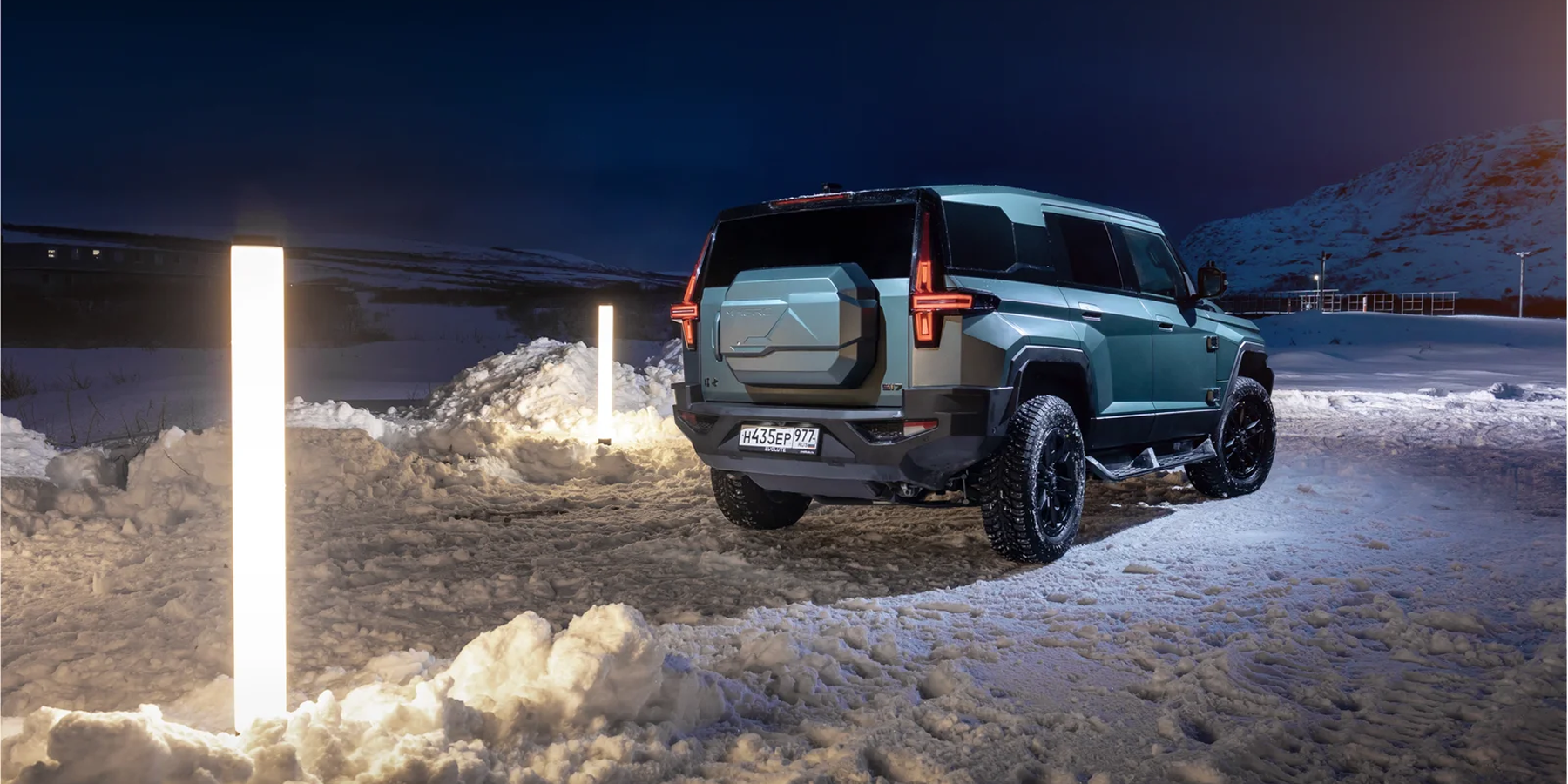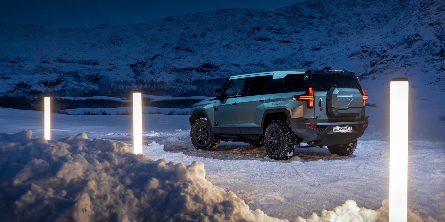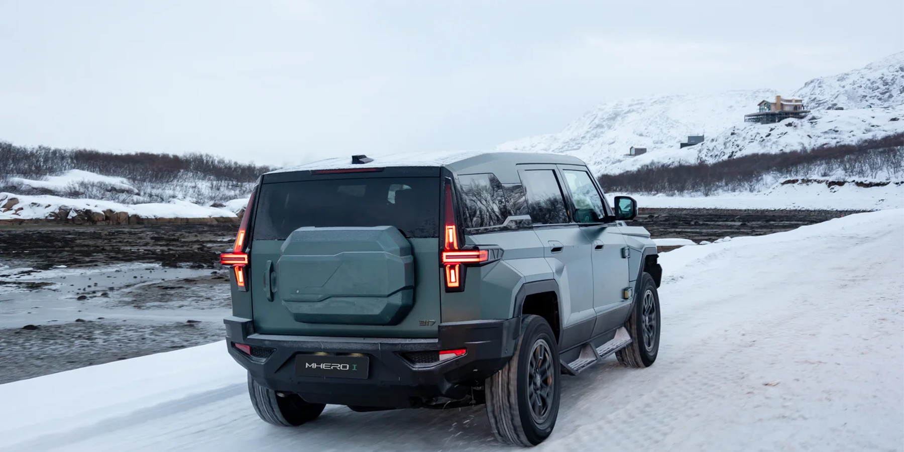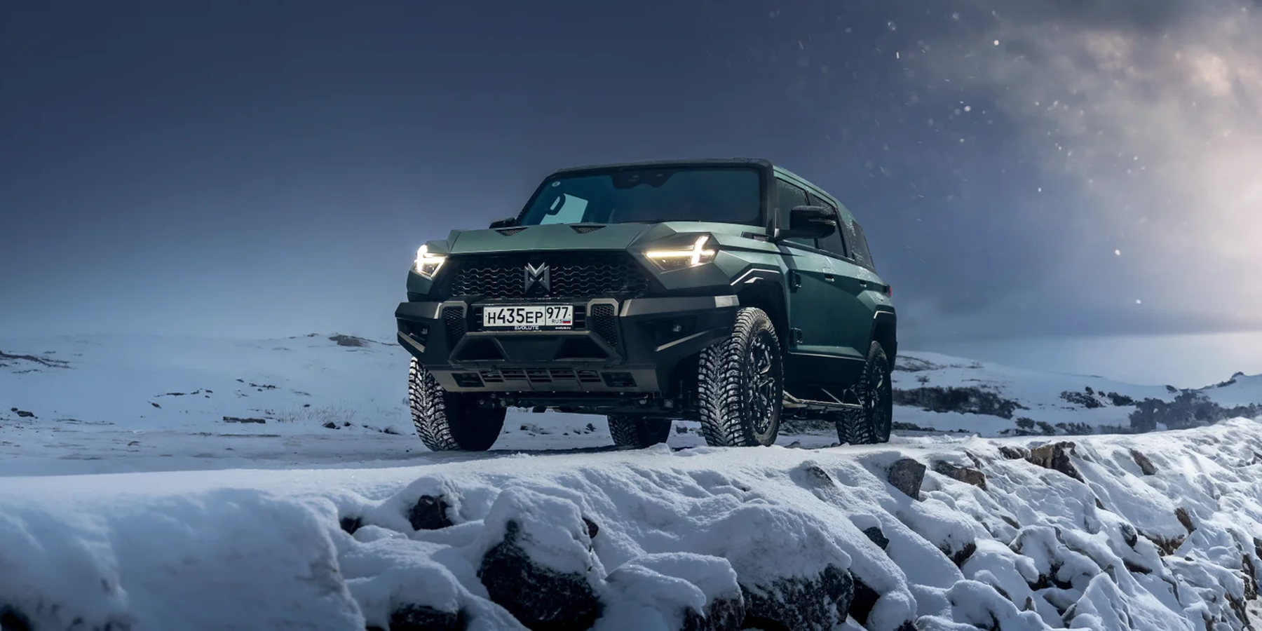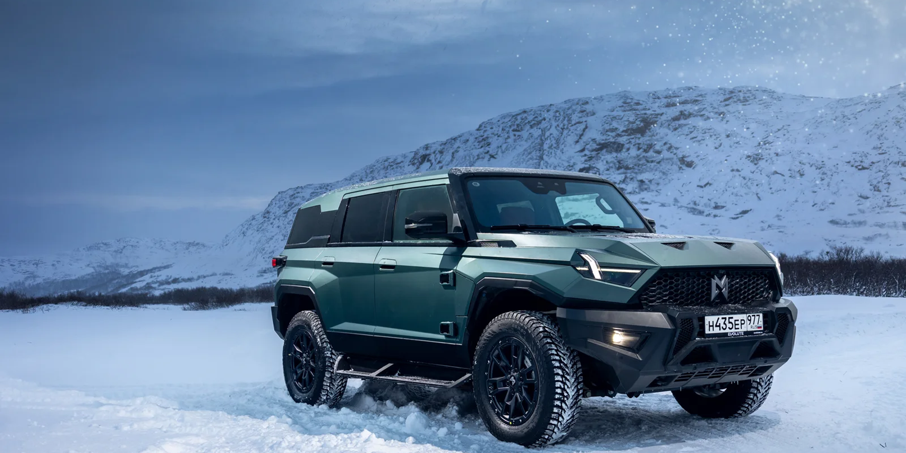 Выглядит он впечатляюще — особенно в суровых пейзажах зимнего Заполярья! И потрясает M-Hero I не только своими угловатыми формами, но и размерами: длина 5066 мм, ширина 2080 мм, высота 1934 мм. И, как ни странно, ездить на нем по дорогам совсем не сложно — благодаря плоским стеклам и панелям, а также высокой посадке за рулем, габариты чувствуются очень хорошо, а при парковке помогают камеры кругового обзора.